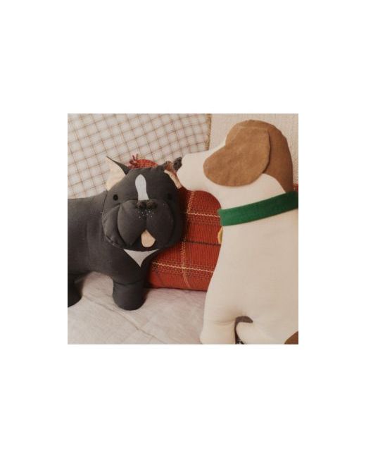 Meet Jimmy! Your perfect little companion. This handcrafted, funny cushion is shaped like a real French Bulldog, made from soft cotton fabric with a light grey print. It features pointy ears that stand up, a tongue sticking out, and a strongly shaped nose made of cord, just like a real Frenchie! A playful and lovable cushion that brings smiles to any space.