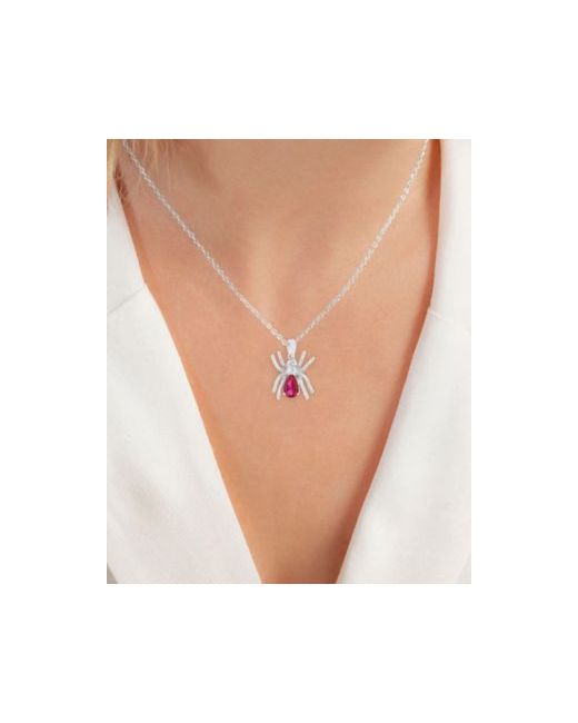 Add playful intrigue to jewelry looks with this necklace shaped in a whimsical spider motif, highlighted by a ruby body and white sapphire accents. Rhodium-plated sterling silver detailing and a bail closure create a sparkling, easy-to-style finish.