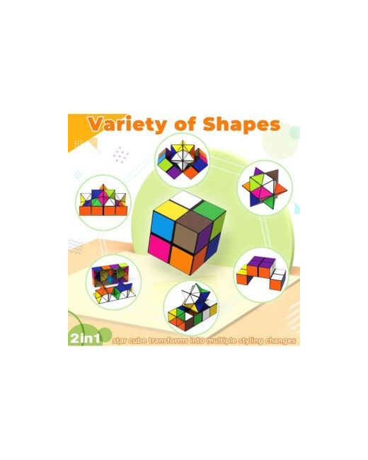 This 2-in-1 colored Rubik's Cube set is a fun and stress-relieving toy suitable for children aged 8-12. Made of lightweight and portable Abs material, its ingenious design features two detachable yet interlocking parts, allowing it to freely transform into various shapes such as cubes, stars, and rectangles. Players can manipulate both connected parts simultaneously, effectively developing logical thinking, spatial imagination, and hand-eye coordination through the challenge of folding and solving. Whether used for daily thinking training, as a stress-relieving toy on the go, or as a relaxing game to promote parent-child interaction, this Rubik's Cube is an ideal creative gift.