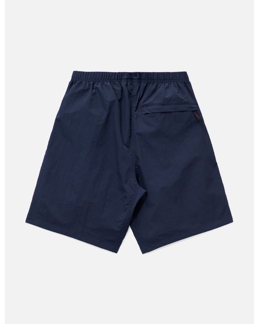 GramicciNylon Packable G-ShortRelaxed fitMade of recycled durable nylonWater-repellent windproof active shell fabricChlorine resistantElastic waistband with integrated buckled beltBrand label at belt tip and hemZip flyGusseted crotch seamTwo front pocketsOne back zipper pocketColor: British Navy