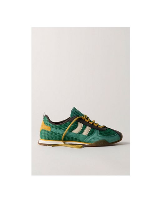 Sporty and inspired by a legacy of 1970s running shoes, these durable sneakers from Coolway feature a breathable mesh base, perforated leather tongues, and slim rubber outsoles for extra grip. * Mesh and leather uppers * Low-top, lace-up sneakers * Heel pull tab * EVA midsole * Rubber outsole Coolway Nilo Sneakers at Free People in Green, Size: EU 38