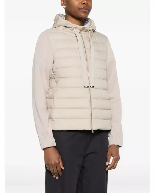 beige hooded front zip fastening long sleeves quilted