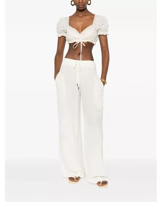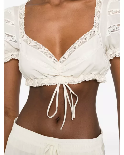 cream lace trim drawstring fastening short sleeves gathered detail
