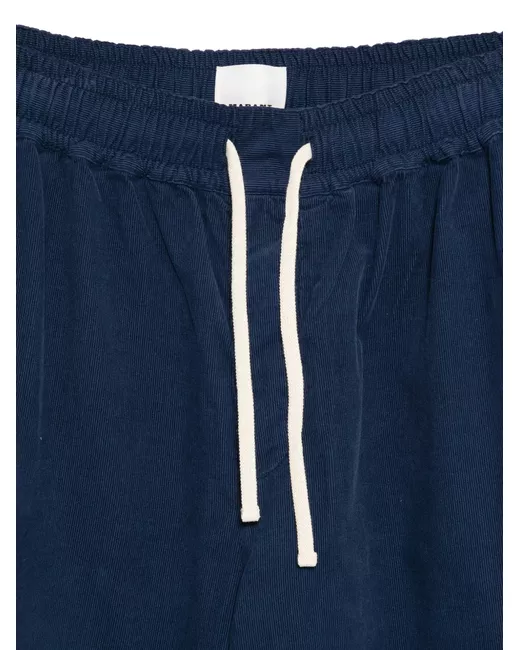 indigo corduroy texture elasticated waistband buttoned back pockets drawstring fastening