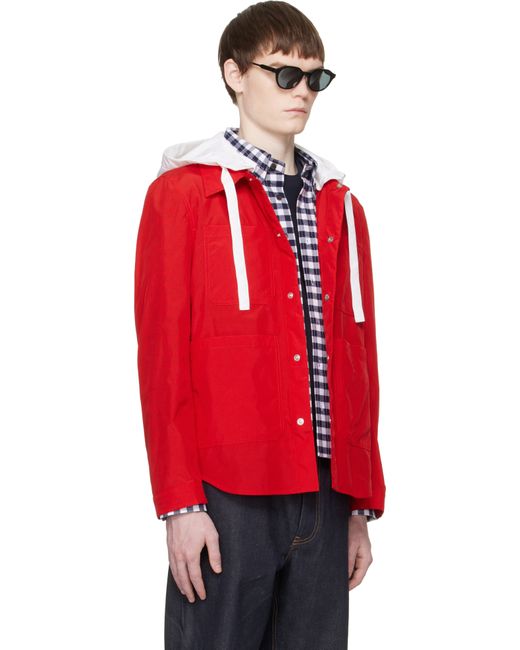 Nylon-blend ripstop jacket. · Drawstring at detachable hood · Spread collar · Press-stud closure · Patch pockets at front · Shirttail hem · Press-stud barrel cuffs · Tricolor grosgrain flag at back collar · Patch pocket at interior Supplier color: Red