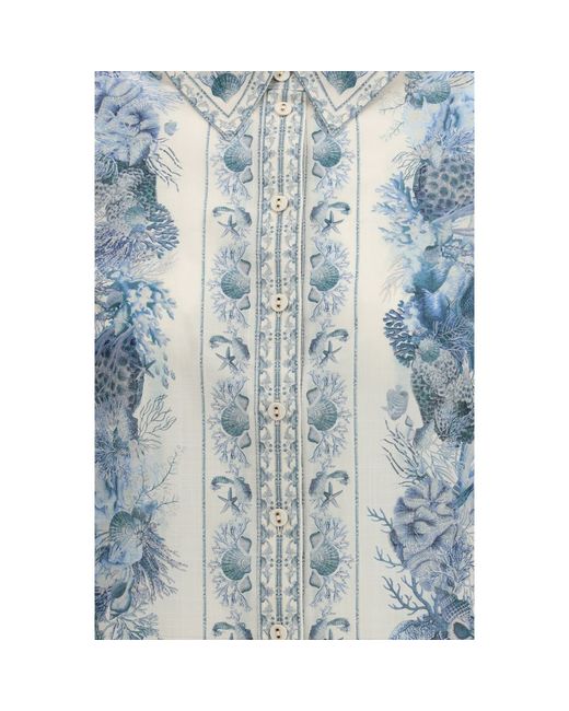 The floral-print cotton Shirt by Zimmermann delivers a fresh, contemporary elegance. Crafted from blue cotton with an all-over print, it features a front button fastening, long sleeves, and a classic collar, creating a clean, refined silhouette. A versatile piece, perfect for elevating modern, elegant looks. Season: SS26 Fit: Regular Composition: 100% Cotton
