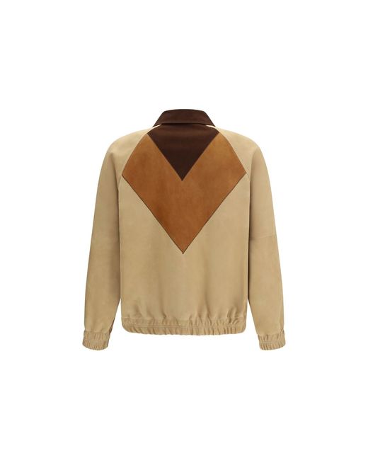 The suede Jacket by Valentino combines elegance and contemporary style, with a shirt collar and front zip closure. The elasticated cuffs and hem ensure comfort and fit, while the two side welt pockets and geometric design give the garment a distinctive and modern character. Season: SS26 Fit: Regular Composition: 100% Goatskin/hircus Goatskin
