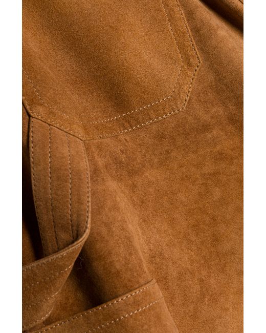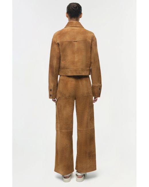 SPRING 2026 WOMEN'S COLLECTION The Bates Suede Straight Leg Pant in Cognac. These suede pants feature a flattering wide-leg, cropped length, and utilitarian seam detailing creating a relaxed silhouette. SIMKHAI Women's Bates Suede Straight Leg Pant in Cognac, Size 0