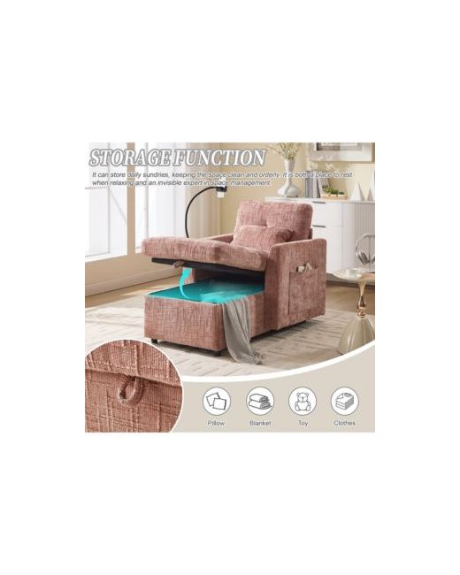 Pink Multifunctional Sofa with Storage Cell Phone Bracket Single Sleeper Chair Chaise Lounge