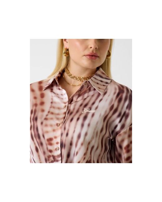Guess gets it right with this resort-ready shirt. Long sleeves and a relaxed fit balance out the cropped, tie-front hem and the bold tropical print.