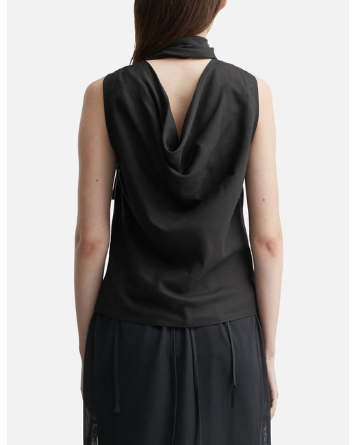 Our LegacyVirtuous TopMade of Japanese cupro and cotton fabricLavallière shawl at neckSleevelessAdjustable fit with inside tiesChanging from relaxed to cinched fitDraped back panel with open backColor: Still Black Calm Cupro Cotton