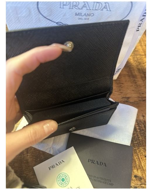 Authentic Prada Saffiano Leather Wallet – Brand New 100% authentic and never used. Comes complete with original box, care card, certificate of authenticity, and everything shown in the photos. This item was an unwanted gift. RRP: £580 No silly offers, please. Crafted from luxurious Saffiano leather, this elegant compact wallet is timeless and practical. Details: • Product code: 1MC112 • Snap fastener closure • Enameled metal triangle Prada logo • One bill compartment • Three card slots • Moiré and Saffiano leather lining Measurements: • Height: 6.5 cm • Width: 11 cm • Depth: 2.5 cm A beautiful, classic Prada piece—perfect for everyday luxury or a special gift.