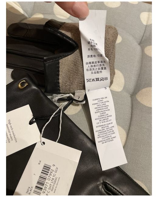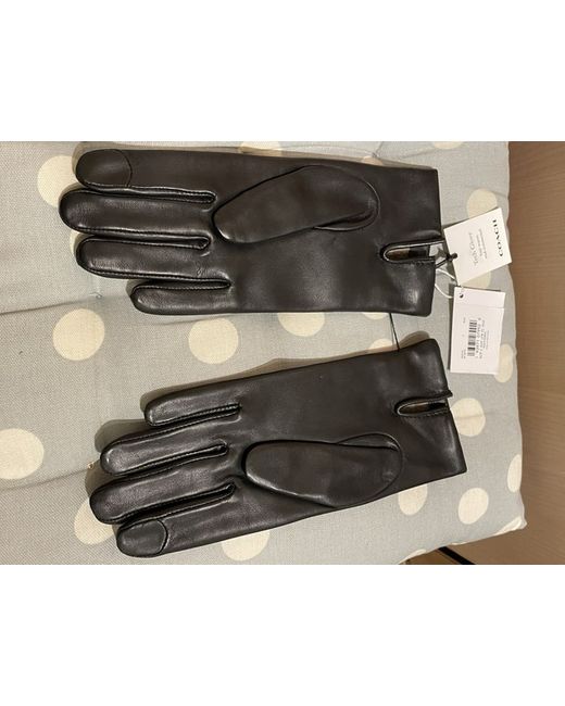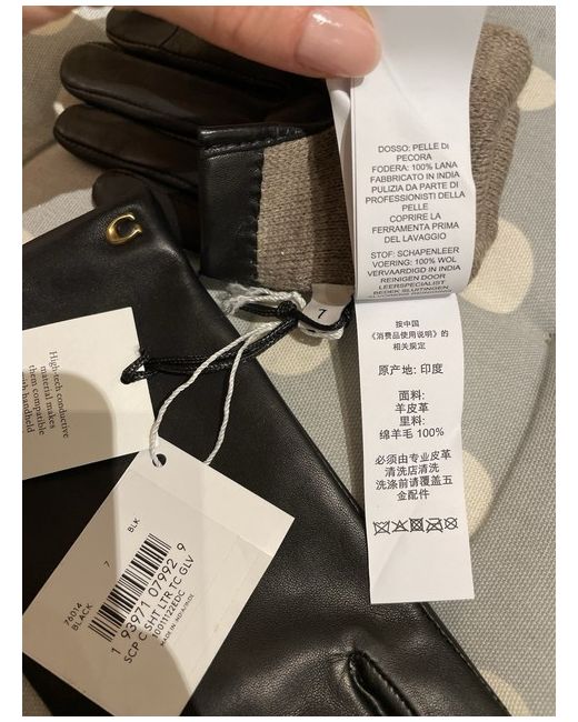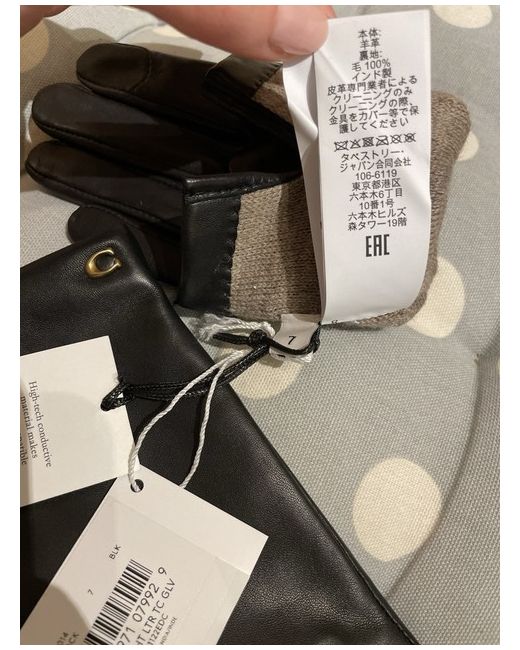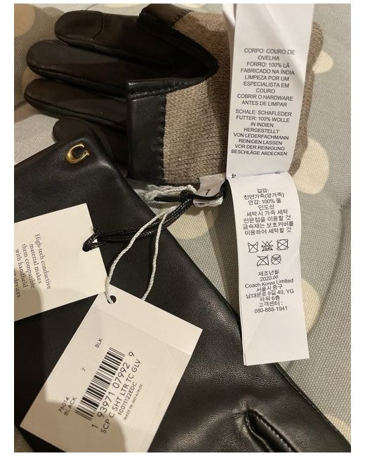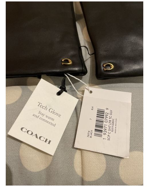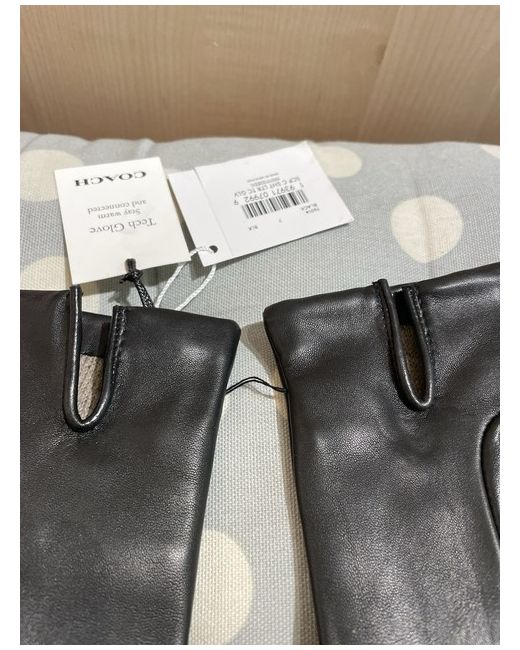 Leather gloves made from high-tech conductive material, compatible with handheld touchscreen devices. Bought from Coach store in London. Brand new with tags on, both gloves still attached together as sold. Very soft leather, high quality craftsmanship and signature ‘C’ logo on wrists. Material: sheep leather Lining: 100% wool Size: XS / S