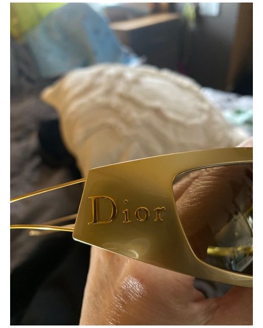 These Dior gold sunglasses are a stunning accessory for women. With a cat eye style and metal frame, they offer UV400 protection and tinted lens technology. The designer theme adds a touch of luxury to the overall look, making them a stylish choice for any outfit. Perfect for Women who want to make a statement with their accessories, these sunglasses are a chic and fashionable option for any summer wardrobe.These were limited edition bought 15 years ago and never worn ! Not easy to find as one off I believe at the time of purchase