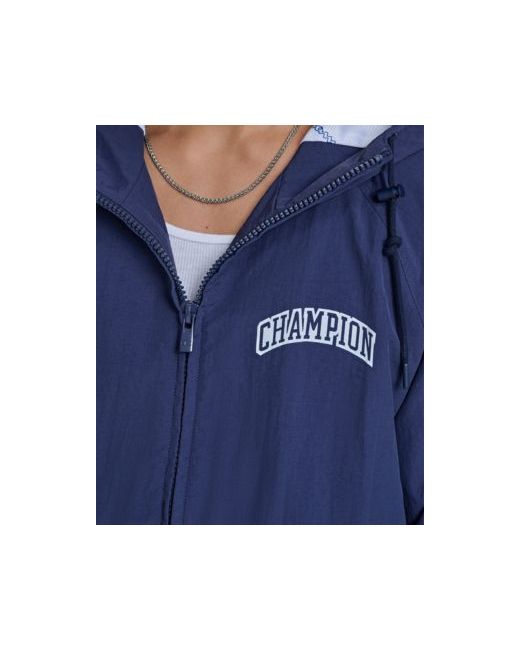 Crafted for all-day comfort, this Champion classic rain jacket includes a hood and cinched hem and cuffs for a tailored fit. Interior lining displays the logo, and two lower zipper pockets provide secure, convenient storage.