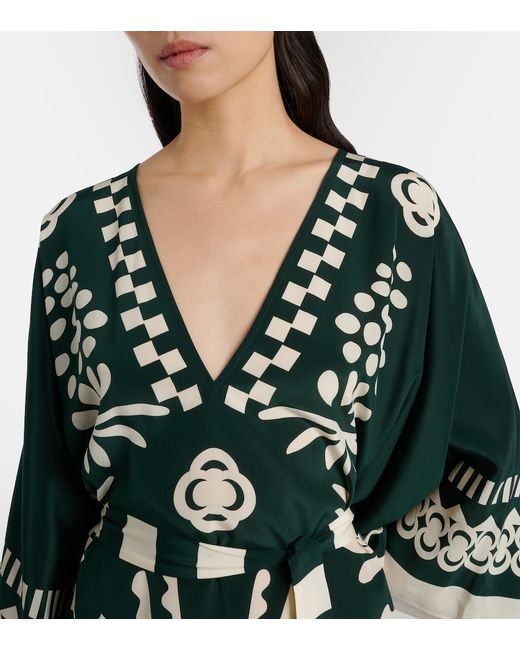 Material: 100% silk. Care instructions: dry clean. Made in China. Designer color name: Scarabee/Panama. Collar: V-neck. Detachable belt. Silk.
