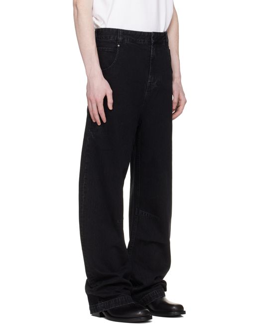 13.75 oz non-stretch denim jeans. · Fading throughout · Wide-leg · Belt loops · Six-pocket styling · Zip fly · Dart at knees · Welt pocket at outseam · Logo patch at back waistband · Logo-engraved gunmetal-tone hardware Supplier color: Magnetite