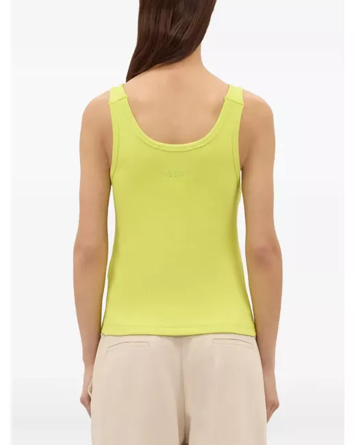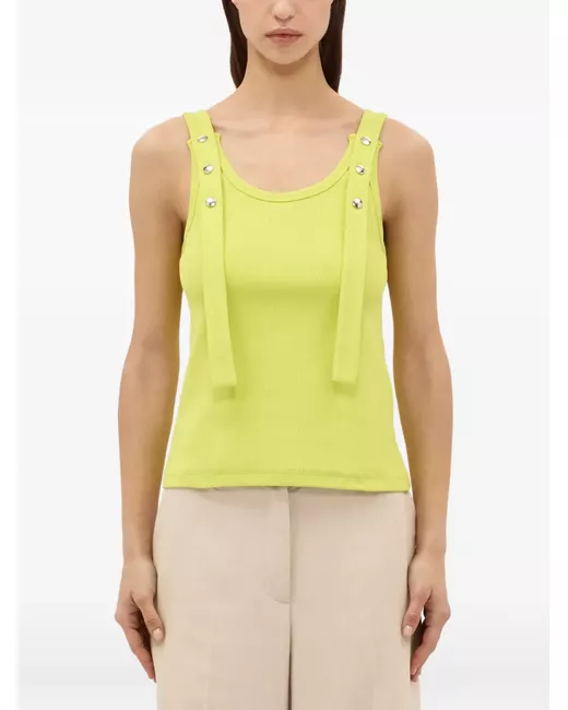 yellow ribbed knit pearl embellishments tie straps round neck sleeveless
