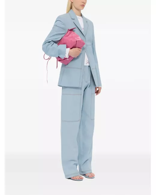 light blue topstitch detail notched lapels button fastening front pockets long sleeves