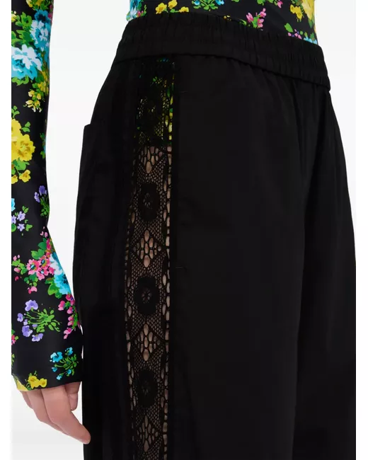 black elasticated waistband side lace panels wide leg two side slit pockets back patch pocket