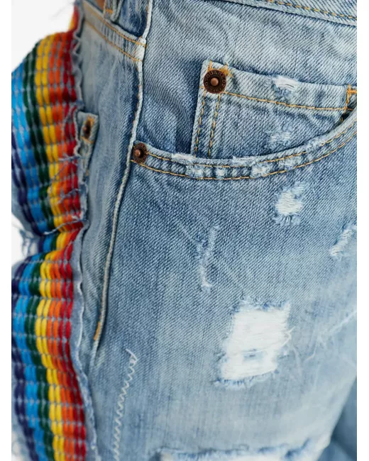 light blue cotton distressed effect rainbow detail button fastening five pockets