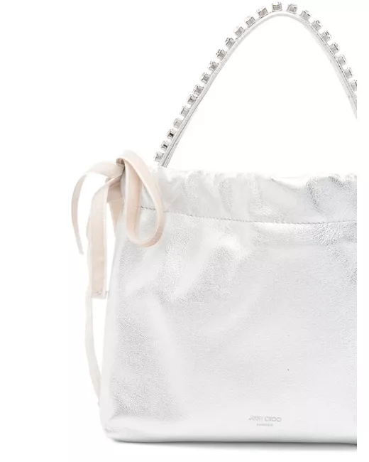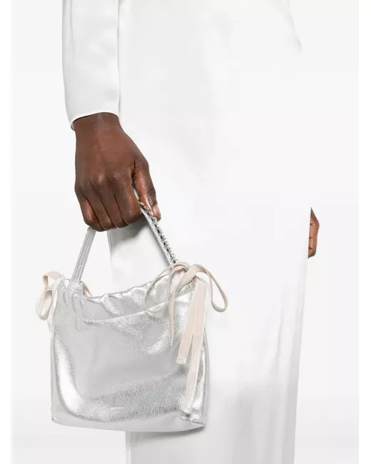 silver-tote bow embellishment drawstring fastening detachable chain-link shoulder strap