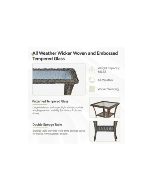 Wicker Patio Conversation Furniture Set with Removable Cushions and Table