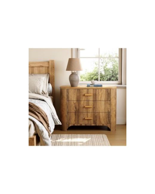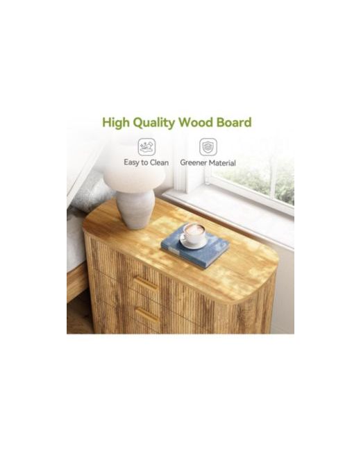 Elevate your bedroom's style and functionality with the Tribesigns Large Nightstand. This oversized bedside table is thoughtfully designed to make a statement while offering exceptional organization. Drawing inspiration from mid-century modern design, it features elegant fluted striped panel detailing and a warm oak finish that brings a touch of retro sophistication to contemporary spaces.