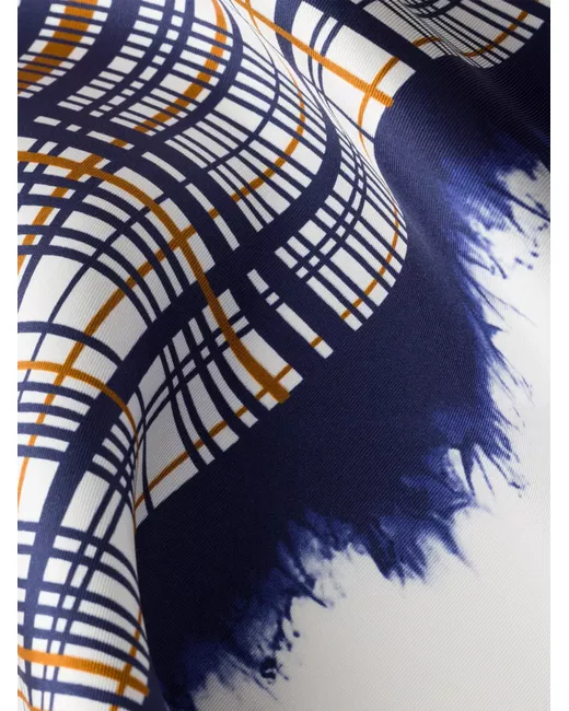 Prints inspired by the Prada archives embellish this silk twill scarf with their eclectic charm. Double Match print: Madras and Tie-Dye Printed logo