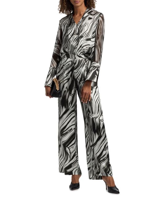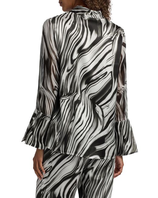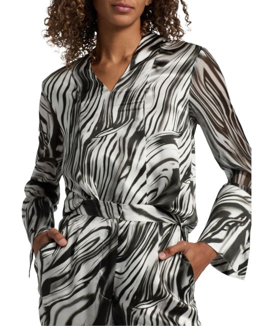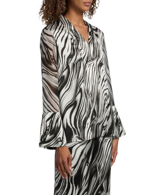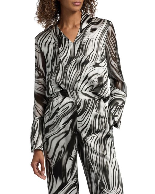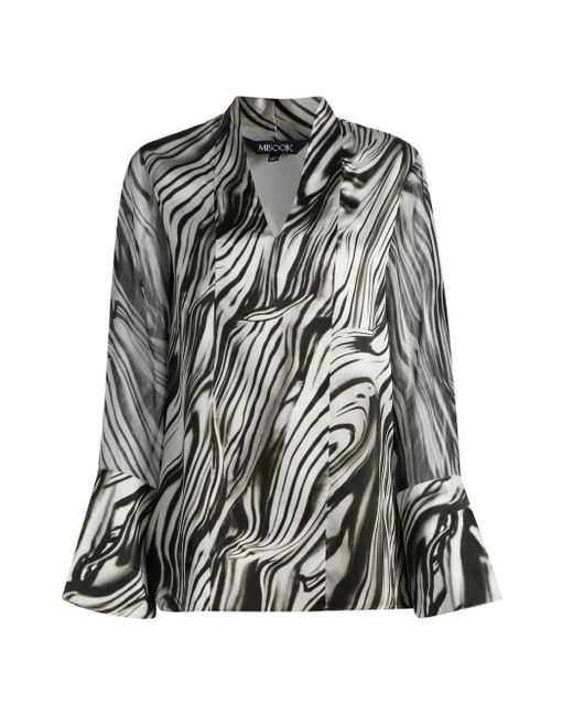 Crafted of fluid silk, the blouse from Misook features a distinctive marbled print. V-neck Long sleeves, flared cuffs Pulls over 100% silk Lined Dry clean Imported SIZE & FIT Model measurements: 5'10" tall Model is wearing a US size Small. Modern Collections - Modern Coll > Misook > Saks Fifth Avenue. Misook. Color: Black White. Size: Small.