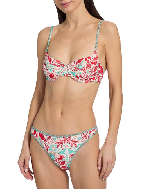 Designed to give medium coverage, Ramy Brook's Mona bikini top is styled with an underwire bust and boasts a floral print. Adjustable straps Sweetheart neckline Medium coverage Back clasp closure 82% nylon/18% spandex Lining: 92% polyester/8% spandex Hand wash Imported Please note: Bikini bottom sold separately. Outerwear And Swimwear - Contemporary Swim > Ramy Brook > Saks Fifth Avenue. Ramy Brook. Color: Flame Combo. Size: XS.