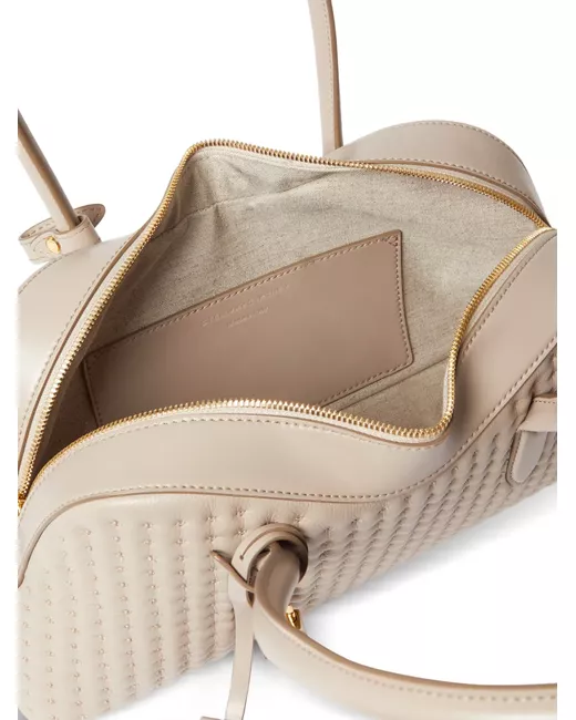 beige quilted design padlock top zip fastening two top handles gold-tone hardware