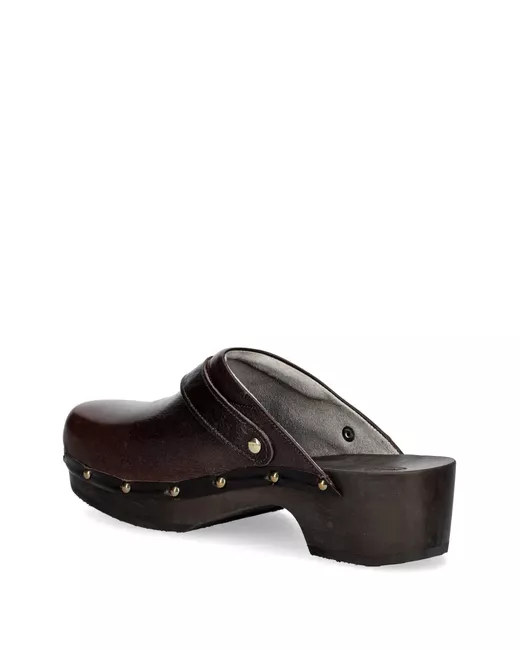 Women's Brown studded buckle clogs