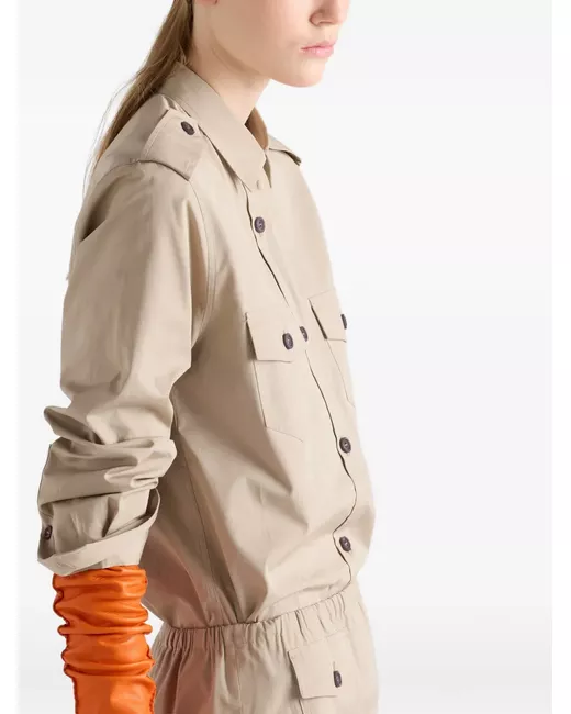 This shirt with a pragmatic character and casual attitude is characterized by its straight menswear-inspired cut. Utility details enrich the design made of cotton poplin. menswear fit classic collar front button closure long-sleeves flapped patch-pocket fabric triangle logo the model is 181 cm tall and wears a size 38