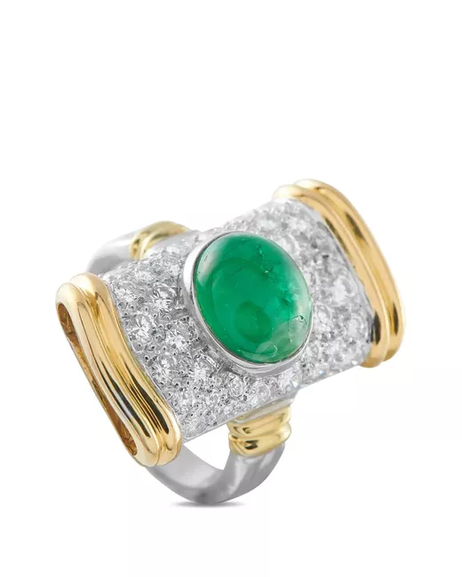 18K yellow gold and platinum pavé-set round-cut diamonds totalling 1.65 carats bezel-set oval-cut emerald totalling 3.20 carats Your purchase will arrive with a gift box. Normal everyday use and external agents may reduce the lustre of gemstones and gold surfaces. To maintain, use specific, non-abrasive products specially meant for cleaning jewellery. Condition: EXCELLENT. This previously owned item is in near-perfect condition with no signs of damage or use.