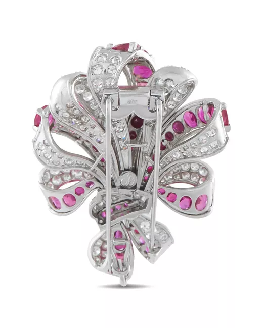 platinum channel-set princess and baguette cut and pavé set round-cut diamonds totalling 6.25 carats prong-set oval and emerald-cut rubies totalling 12.0 carats ribbon design Your purchase will arrive with a gift box. Condition: EXCELLENT. This previously owned item is in near-perfect condition with no signs of damage or use. Normal everyday use and external agents may reduce the lustre of gemstones and gold surfaces. To maintain, use specific, non-abrasive products specially meant for cleaning jewellery.