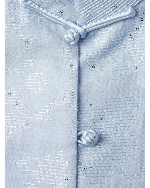 blue sequin embellishment high neck button fastening patterned wide sleeves