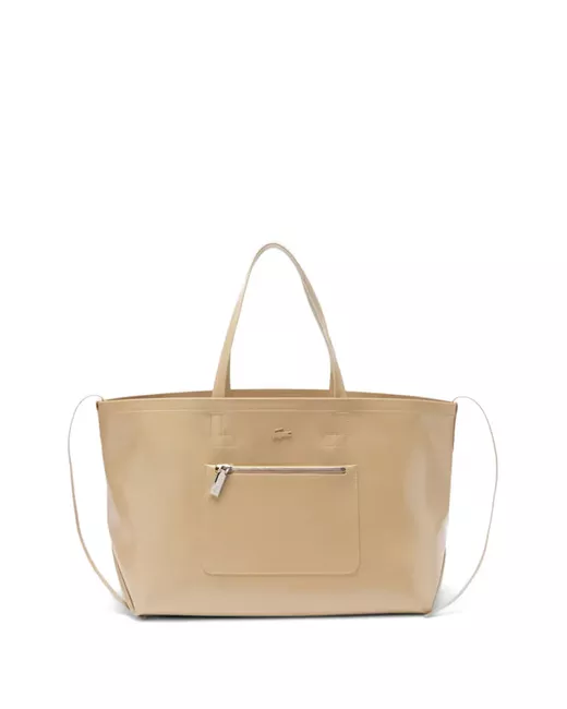 beige top handle front zip pocket logo detail shoulder strap slip pocket