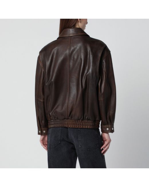 Bomber jacket by Dunst in brown vintage-effect lambskin leather, featuring a front zip fastening with snap-button placket, wide long sleeves, two front patch pockets with snap-button flap and side opening, and elasticated hem.