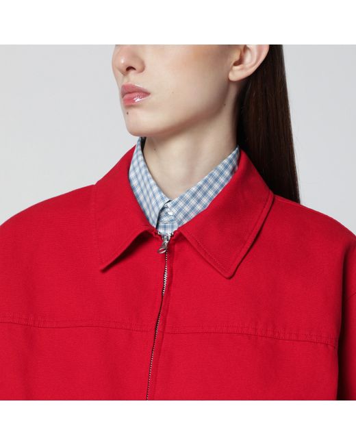 Jacket by Dunst in red cotton, featuring front double-zip fastening, classic collar, elasticated hem, two side pockets and a relaxed silhouette.