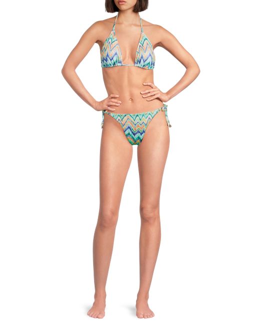 The bikini top from Milly features a tropical chevron pattern and features triangle cups with medium coverage. Halterneck Adjustable shoulder straps Medium coverage Back tie closure Imported Please note: Bikini bottom sold separately. ABOUT THE BRAND Having garnered a cult following since its Y2K inception, Milly epitomizes contemporary fashion that maintains a strong point of view, with a mission to create wardrobe go-tos that will never get lost in the crowd. The Hollywood-favorite label has grown into a global powerhouse, with offerings ranging from workwear to swimwear to eveningwear. Outerwear And Swimwear - Modern Swim > Milly > Saks Fifth Avenue. Milly. Color: Tropical Multi. Size: Small.