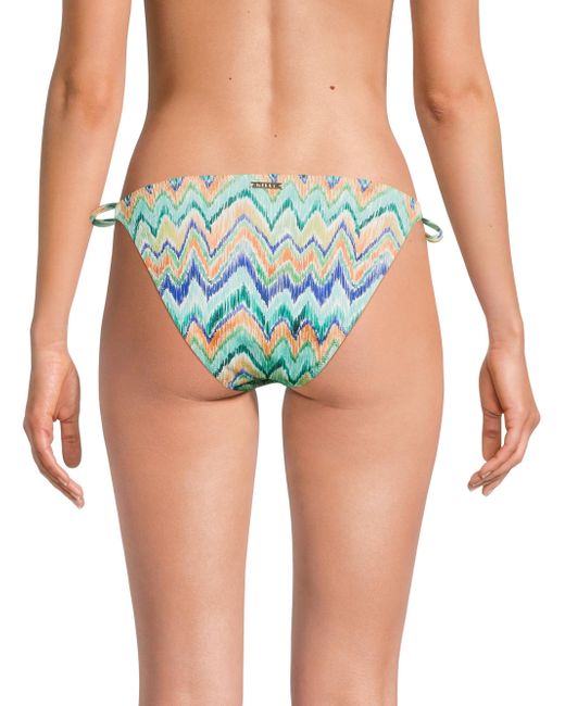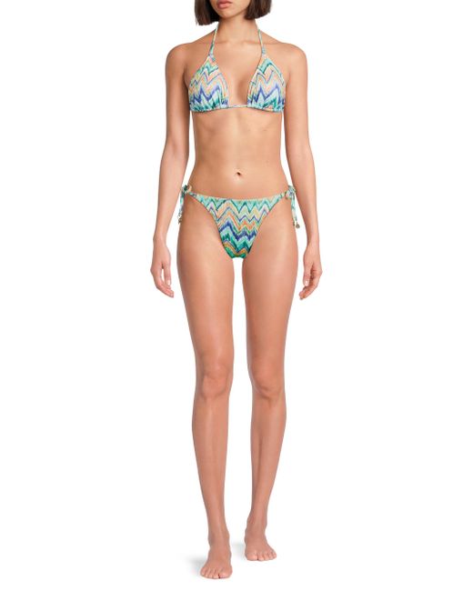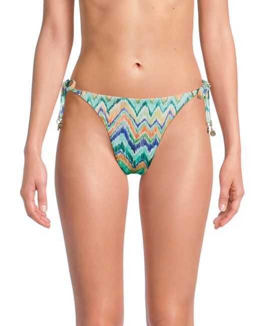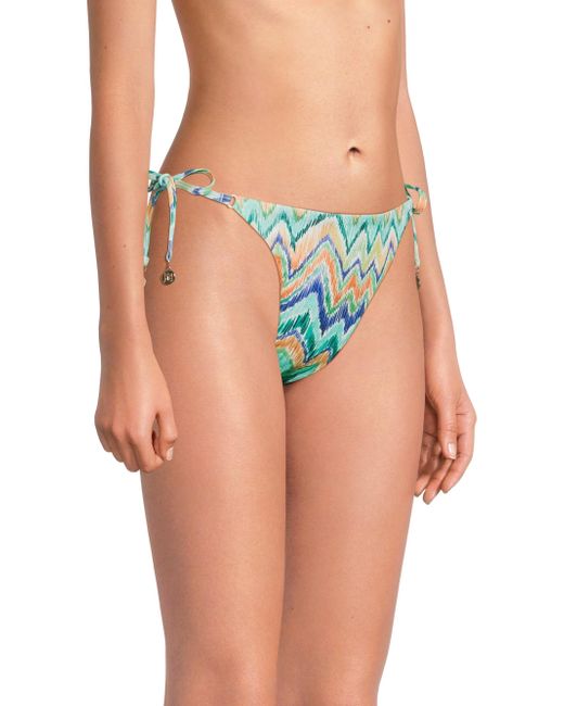 The string bikini bottom from Milly features a tropical chevron pattern and goldtone accents at the ties. Side ties Medium coverage 90% polyester/10% elastane Dry clean Imported ABOUT THE BRAND Having garnered a cult following since its Y2K inception, Milly epitomizes contemporary fashion that maintains a strong point of view, with a mission to create wardrobe go-tos that will never get lost in the crowd. The Hollywood-favorite label has grown into a global powerhouse, with offerings ranging from workwear to swimwear to eveningwear. Outerwear And Swimwear - Modern Swim > Milly > Saks Fifth Avenue. Milly. Color: Tropical Multi. Size: Small.