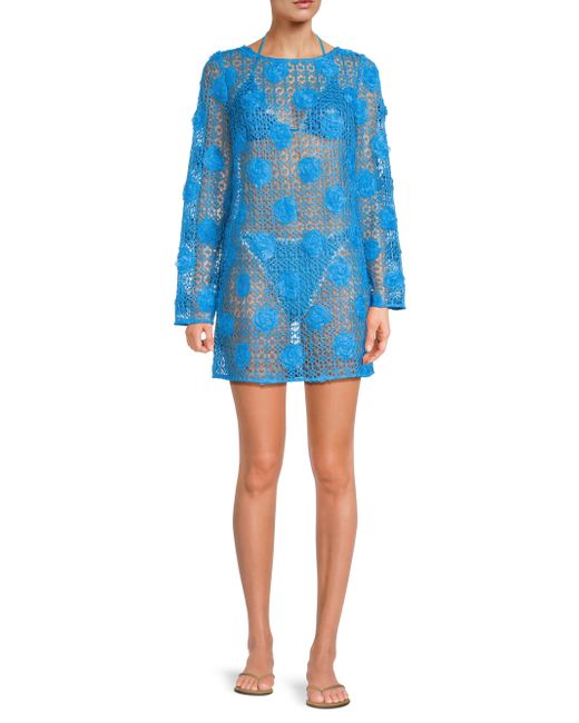 This long-sleeve cover-up from Milly is crafted of cotton crochet and features a 3D rose design. Scoopneck Long sleeves Back tie closure 100% cotton Dry clean Imported SIZE & FIT About 21.25" from shoulder to hem Model measurements: 5'10" tall Model is wearing a US size Small ABOUT THE BRAND Having garnered a cult following since its Y2K inception, Milly epitomizes contemporary fashion that maintains a strong point of view, with a mission to create wardrobe go-tos that will never get lost in the crowd. The Hollywood-favorite label has grown into a global powerhouse, with offerings ranging from workwear to swimwear to eveningwear. Outerwear And Swimwear - Modern Swim > Milly > Saks Fifth Avenue. Milly. Color: Blue. Size: XS.