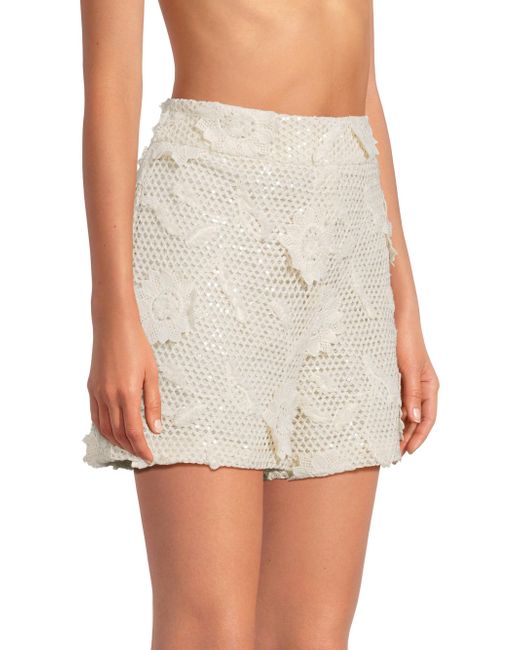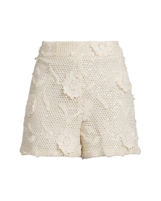 Crafted of cotton, these high-rise shorts from Milly are embellished with lustrous tonal sequins and feature a crochet design with knit floral appliqué. Banded waist Side zip closure 100% cotton Dry clean Imported SIZE & FIT Model measurements: 5'10" tall Model is wearing a US size Small. Outerwear And Swimwear - Modern Swim > Milly > Saks Fifth Avenue. Milly. Color: White. Size: Small.