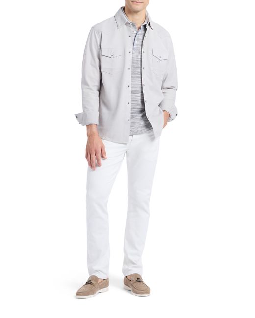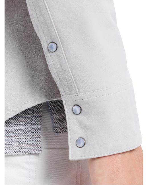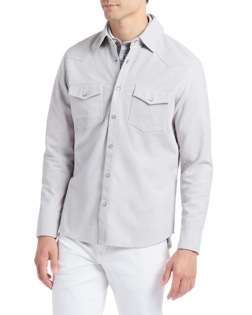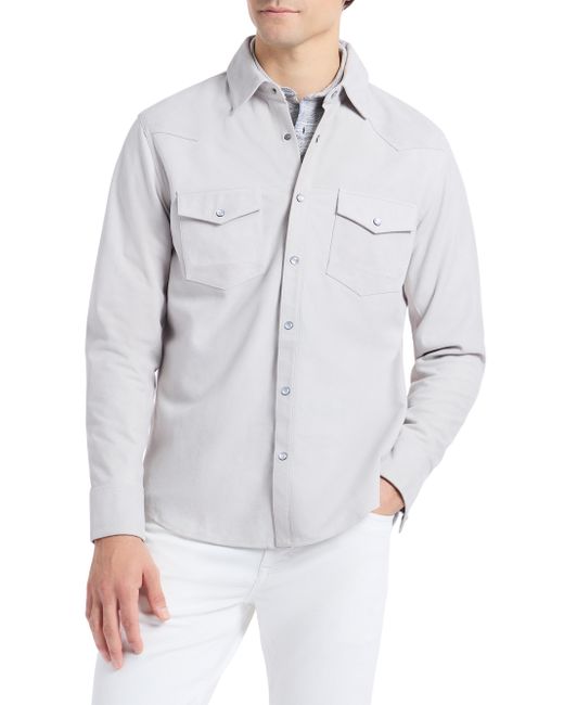 The Marstow shirt jacket from Robert Graham, crafted of supple leather, features Western-inspired yoke detailing and a snap-front closure. Point collar Long sleeves, button cuffs Chest snap flap patch pockets Front snap closure 100% leather Dry clean by leather specialist Imported SIZE & FIT Model measurements: 6'2" tall, 40" chest, 31" waist Model is wearing a US size Medium. Mens Modern Coll & Outer - Contemp Classic Collecti > Robert Graham > Saks Fifth Avenue. Robert Graham. Color: Stone. Size: Small.