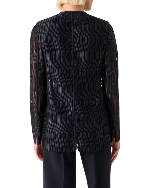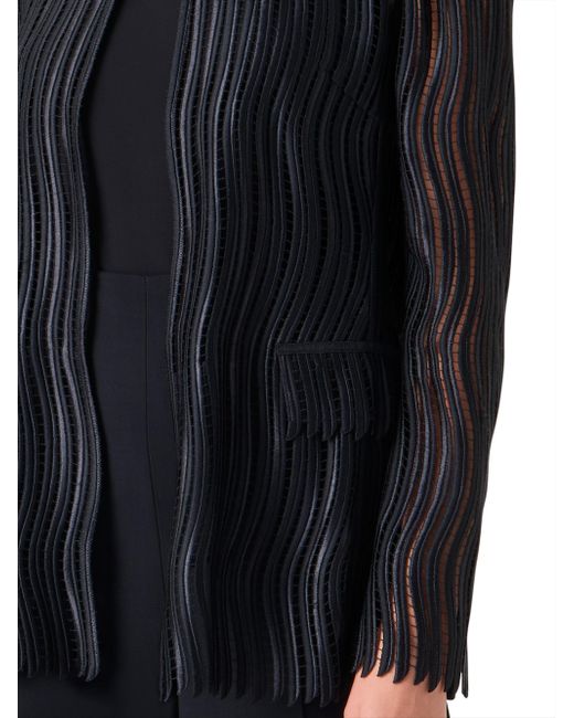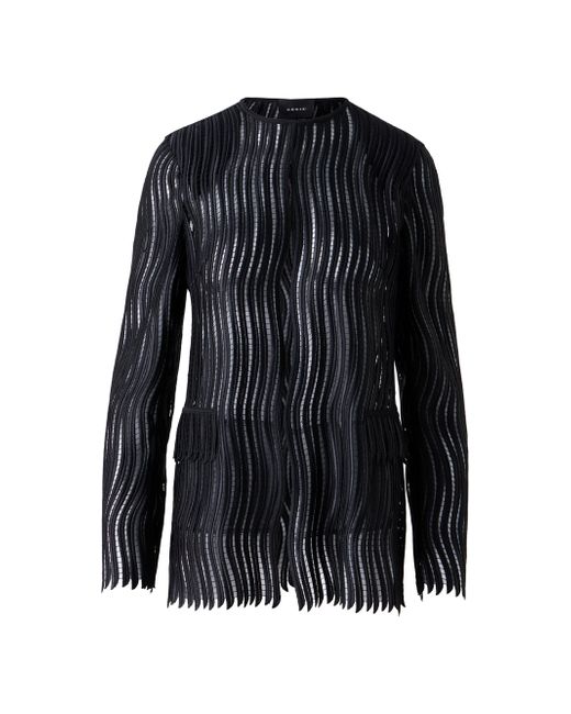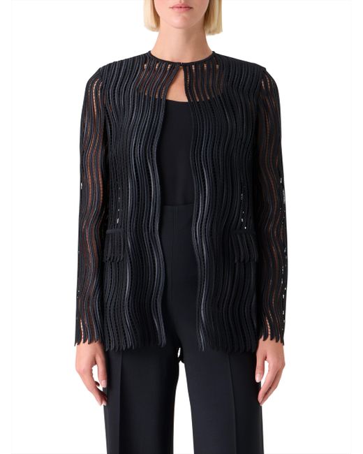 Akris' Hekka jacket features a wave guipure pattern, a crewneck, and long sleeves. Crewneck Long sleeves Front hook-and-eye closure 100% polyester Lining: 100% polyester Trim: 100% silk Dry clean Made in Switzerland SIZE & FIT Model measurements: 5'10" tall Model is wearing a US size 4 ABOUT THE BRAND Founded in 1922 in St. Gallen, Switzerland, the name Akris was derived from founder Alice-Kriemler Schoch's initials. The entrepreneurial designer first started designing dotted aprons with intricate embroidery and soft cotton, which quickly grew into a full line of ready-to-wear. Almost 100 years later, the brand is now helmed by her grandsons. Creative Director Albert Kriemler continues to pay homage to his grandmother through polka-dot lined clothing, luxe fabrications and modern design-which now include sleek accessories like the cult-favorite AI trapezoidal handbag. Advanced European - Akris > Akris > Saks Fifth Avenue. Akris. Color: Black. Size: 8.