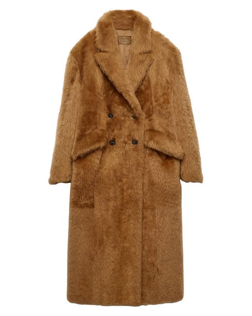 Women's Brown Shearling Double Breasted Coat