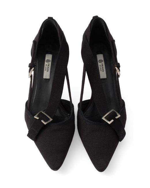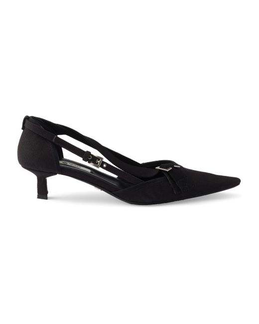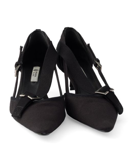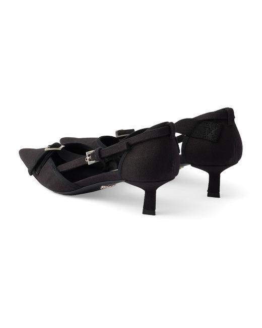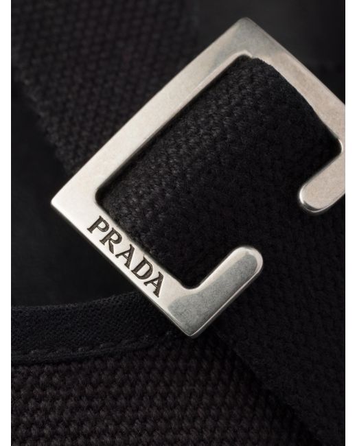 Upper with logo-engraved metal buckles Leather sole and rubber heel tip with metal lettering logo Fabric-covered heel, height 45 mm / 1.8'' Imported 100% Cotton. Lsd Rtw - Prada Rtw > Prada > Saks Fifth Avenue. Prada. Color: Black. Size: 5.5.