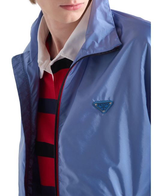 Regular fit Stand-up collar Straight sleeve Zipper closure Welt zipper pockets Elasticized cuffs Regular shoulder Straight hem, Partially lined Enameled metal triangle logo on the front 100% Polyamide Imported. Lsd Rtw - Prada Rtw > Prada > Saks Fifth Avenue. Prada. Color: Blue. Size: XS.