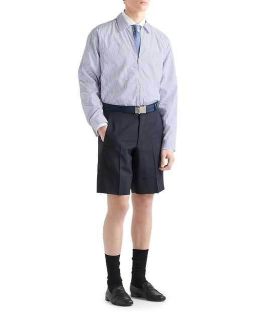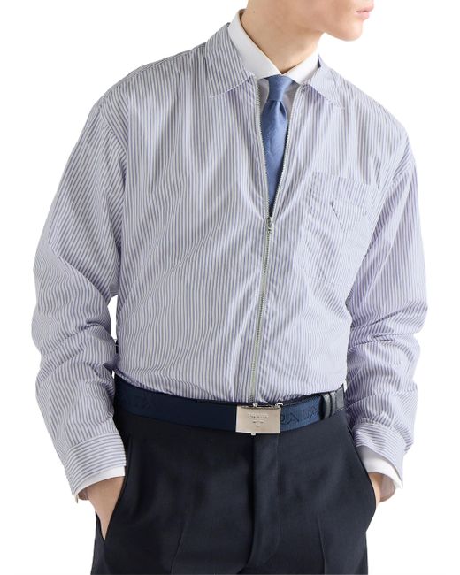 Loose fit Classic collar Patch pocket Straight hem Cuff with mother-of-pearl button Zipper closure Fabric triangle logo on the front 100% Cotton - 100% Trochus Niloticus Imported. Lsd Rtw - Prada Rtw > Prada > Saks Fifth Avenue. Prada. Color: Blue. Size: Large.